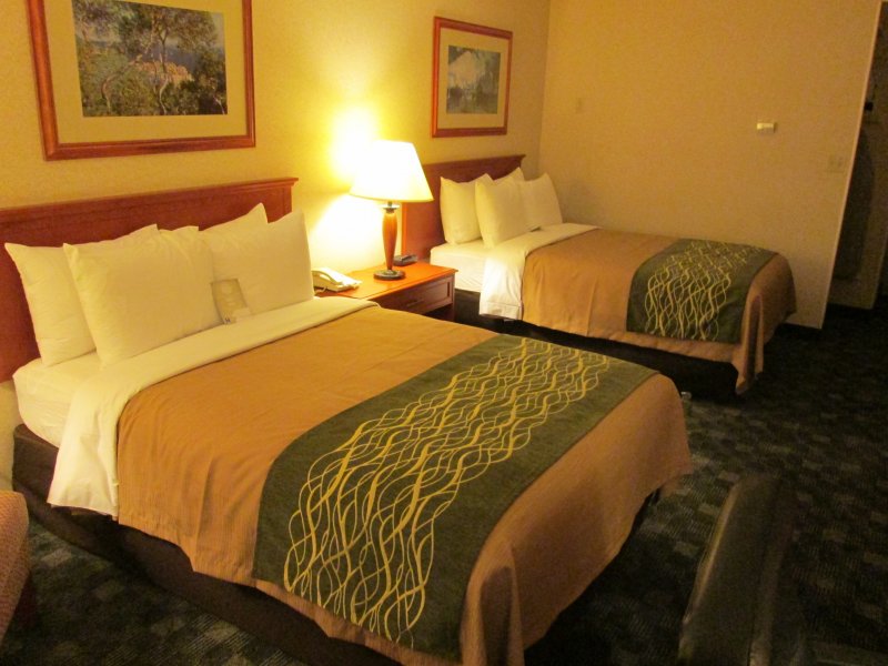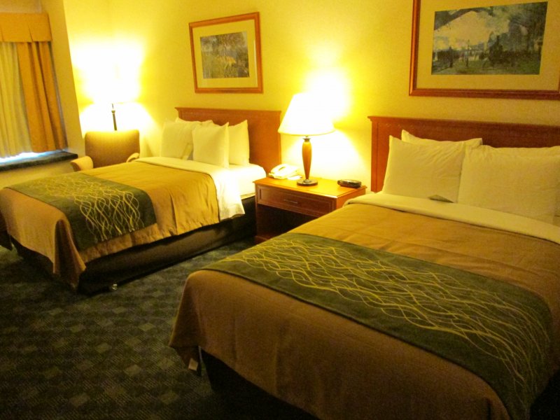 In-room amenities include high quality linens and Sealy mattresses, a large desk with electrical outlet, wired and wireless internet access, ergonomic chair, A/C, iron and ironing board, in-room coffee maker, cable/satellite flat screen TV, telephone equipped with voicemail, hairdryer, and mini fridge.